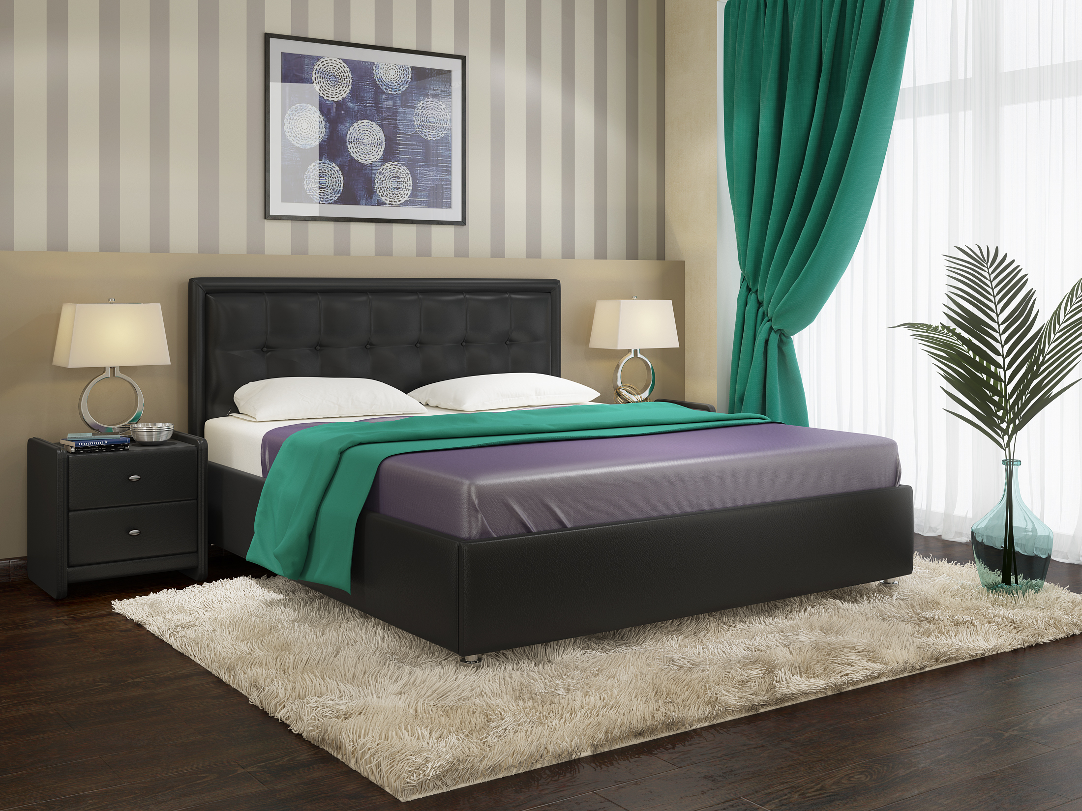 Кровать Amelia. Стильная и статная кровать — станет настоящей находкой для самых взыскательных людей. Кровать представлена в обивке из современного экологичного материала “экокожи” - она приятна на ощупь - мягкая, эластичная, не выцветает со временем, долговечна, неаллергенна, пропускает воздух, а хромированные ножки отлично дополняют внешний вид изделия.