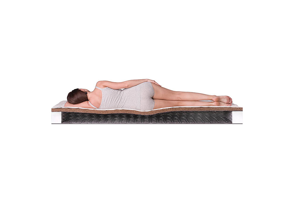 • Сторона Б – холлофайбер (жёсткая вата) материал, являющийся заменителем эластичной пены. Уровень жёсткости холлофайбера выше, чем у пены, и ниже, чем у койры, но его вполне достаточно, чтобы обеспечить надёжную поддержку позвоночнику во время сна. Ещё одним достоинством этого наполнителя является его относительно низкая цена, благодаря чему модель Kombi 2 Bonnel стоит дешевле своих аналогов, не уступая им в качестве и надёжности.