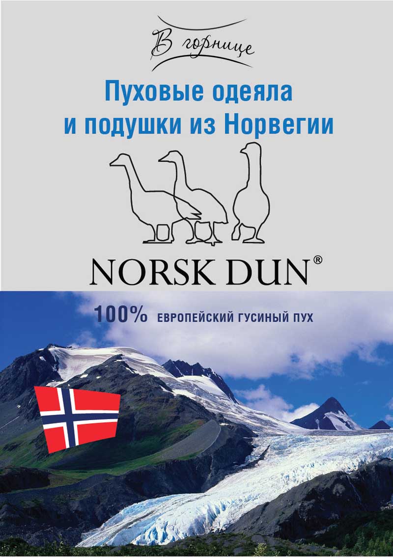 Пух в изделиях Norsk Dun, используются только Exceptional Quality, Highest Quality.